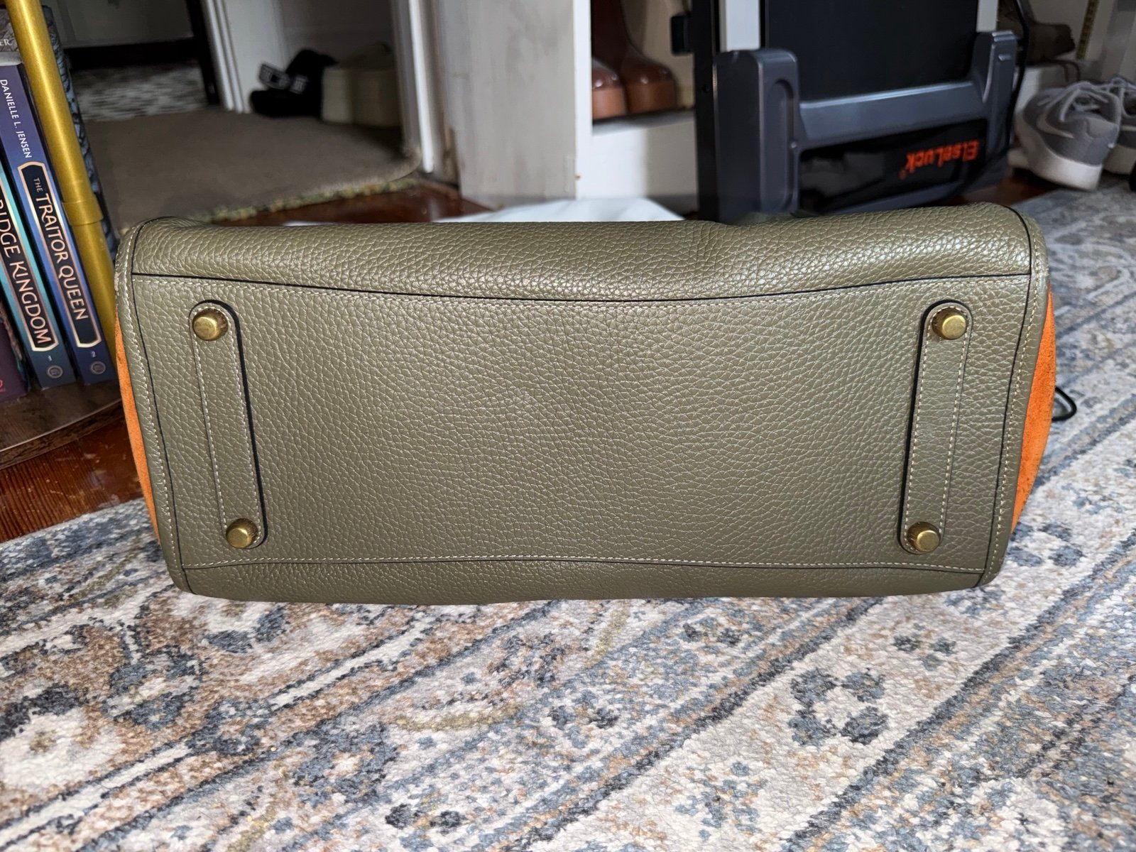Worn out a few times, otherwise stored in the dust bag as shown! There is scuffing on the corners as shown, that is a photo of all four corners, no other damage. Retails for 1,095, they no longer sell this color combo!