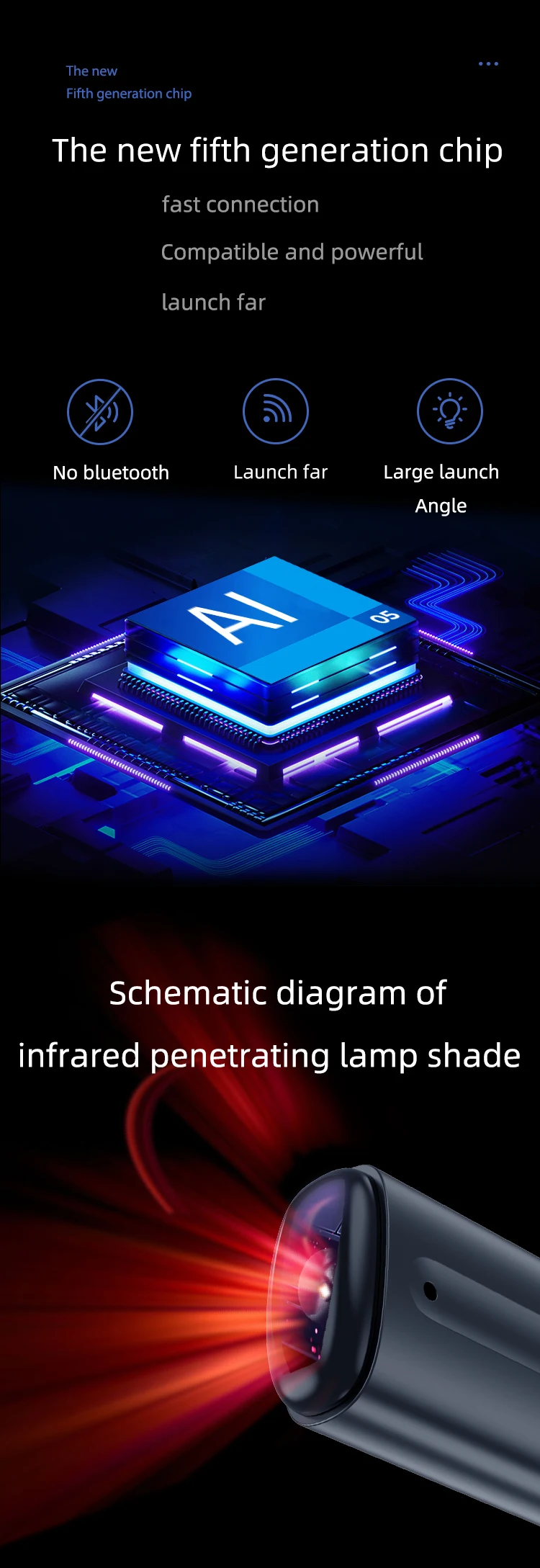 5.【New Upgraded Chip】Using a new fifth-generation chip, it is faster to connect without Bluetooth, making the transmission distance longer and the angle larger.