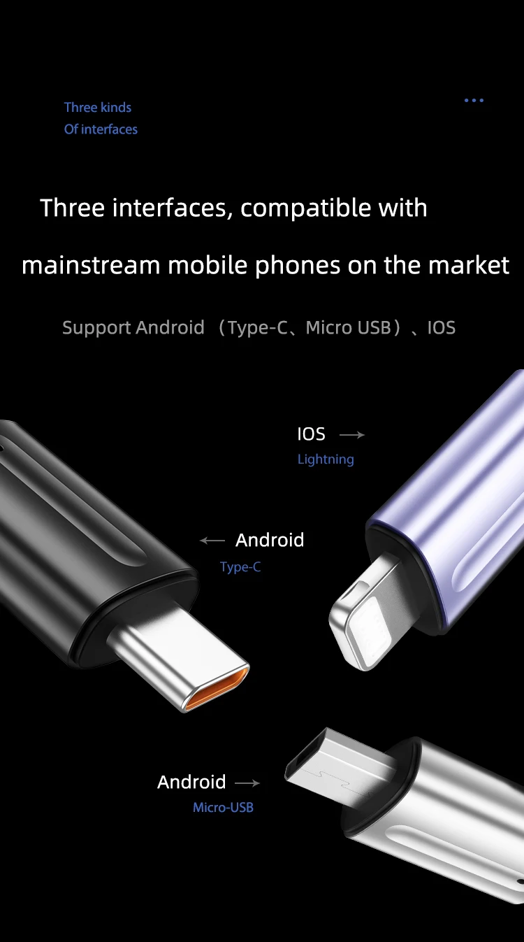 Applicable mobile interface: Type-C, Lightning, MicroUSB