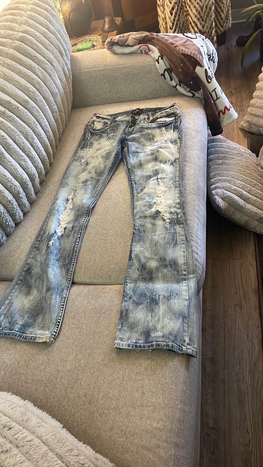Love these jeans ! ♥️ cool great looking jeans distressed size 6.